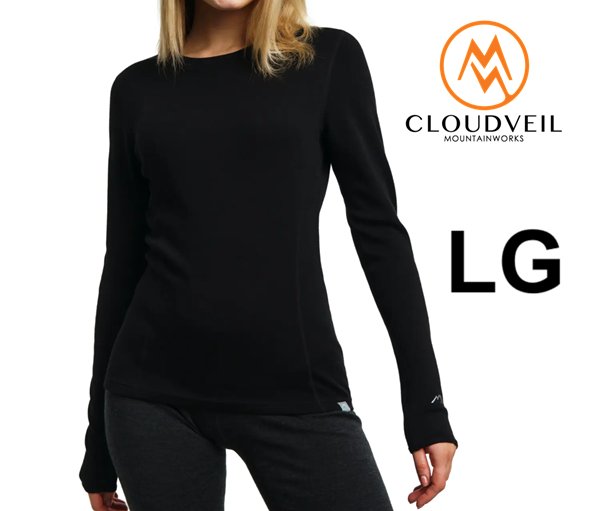 WOMENS CLOUDVEIL 100% MERINO WOOL LONG SLEEVE SHIRT - LARGE - BLACK (STYLE: 1142103)