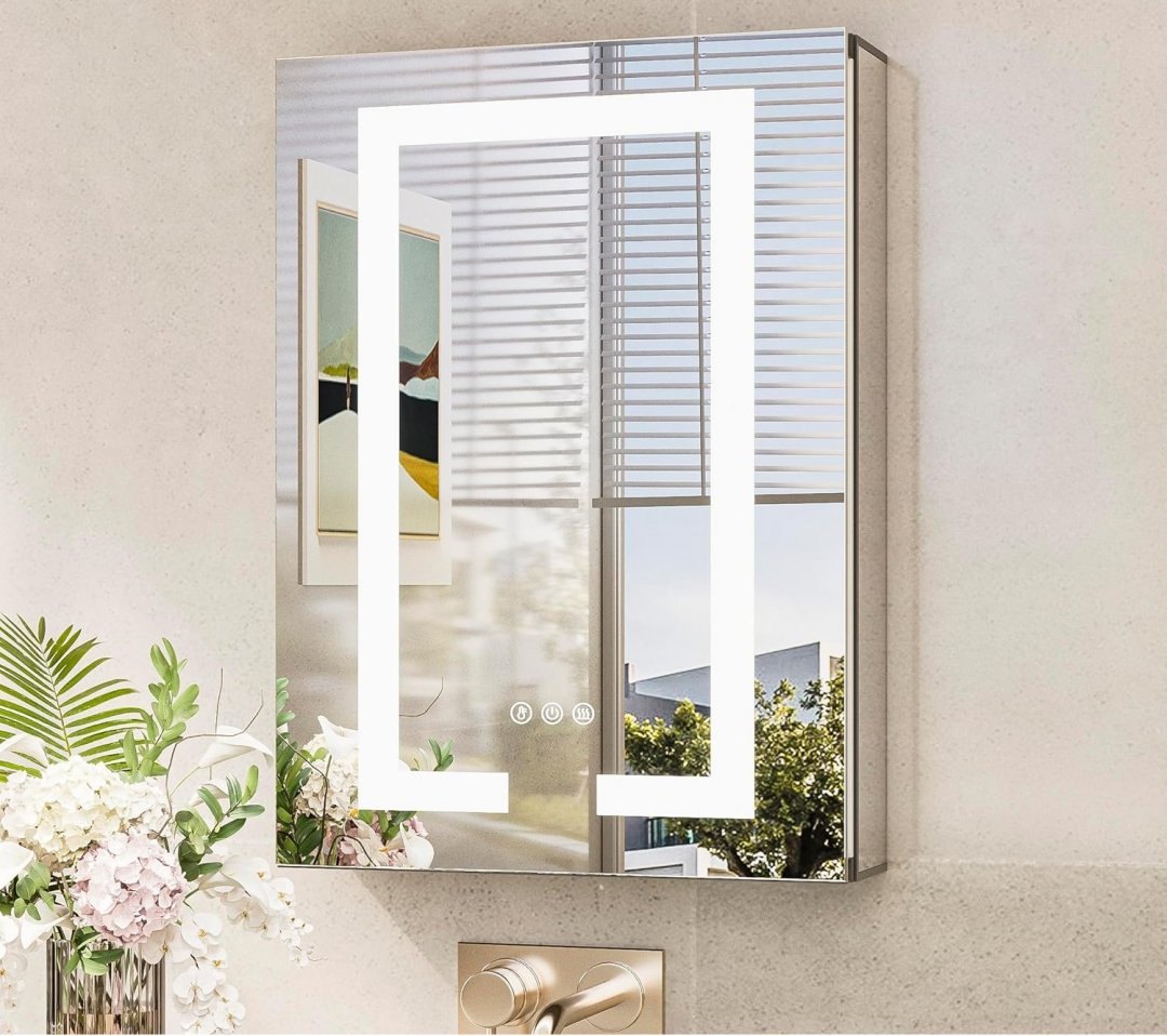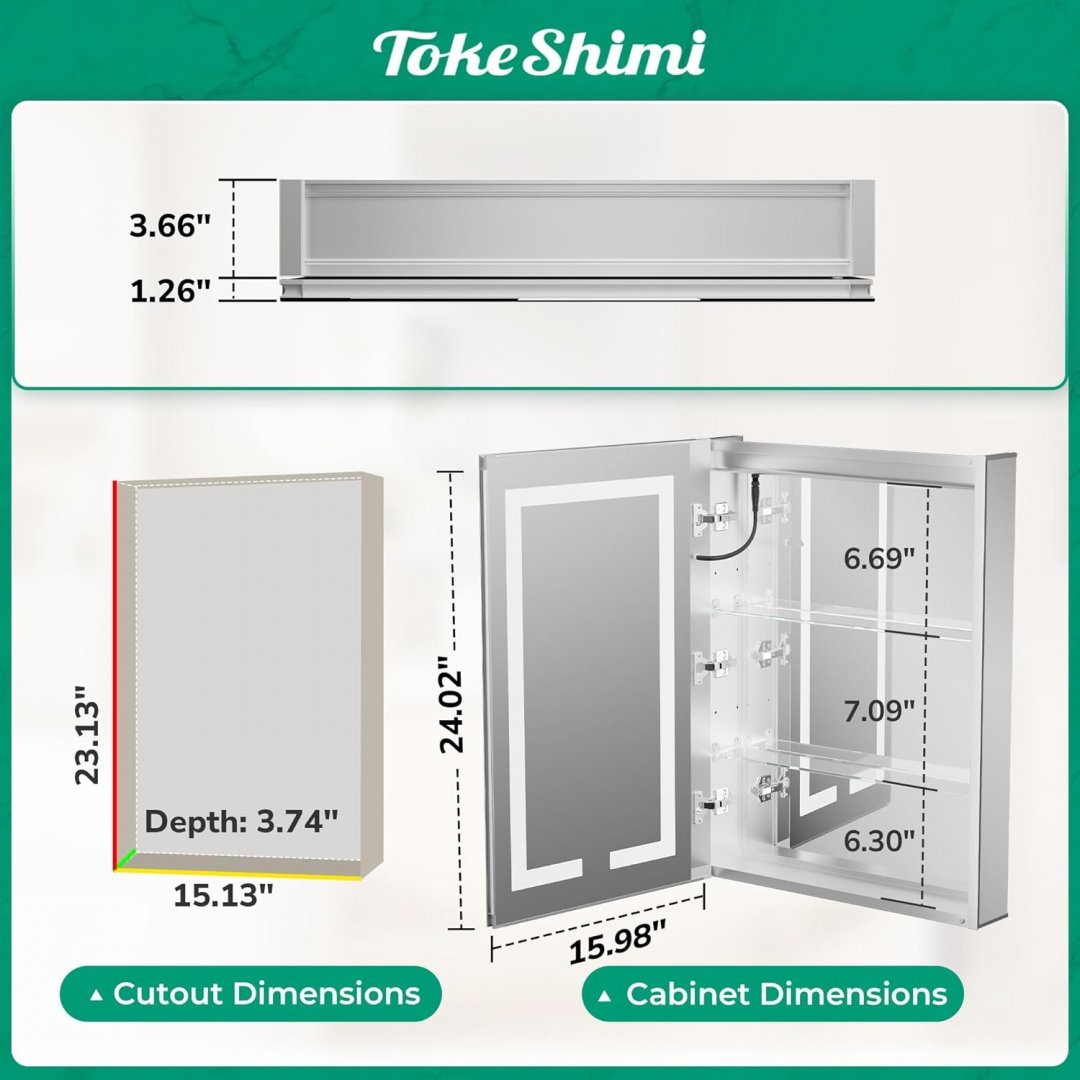 tokeshimi Recessed Medicine Cabinet with Dimmable Lights and storage - 16" x 24" - silver