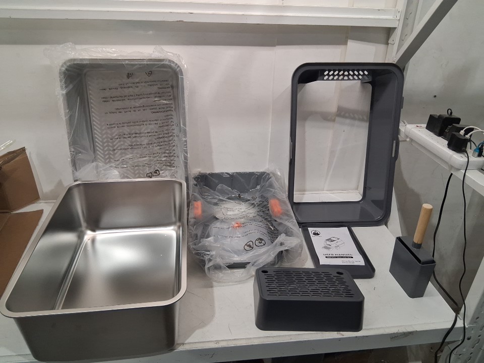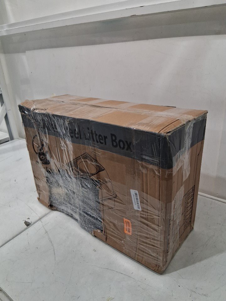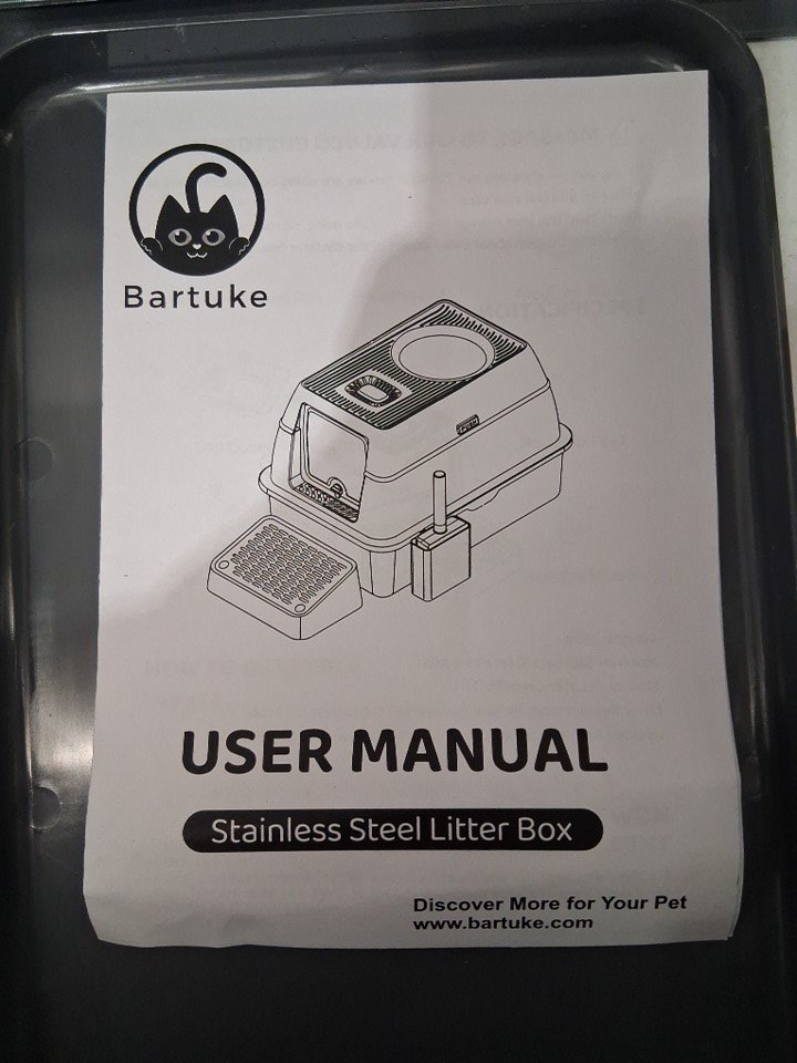 Bartuke Stainless Steel Cat Litter Box with Lid, Enclosed High Sided Removable Metal Litter Tray with sifting pan, and Scoop - 23.6" x 17.7" x 11.8" - Dark Grey (Model: B0F2J1MT16)