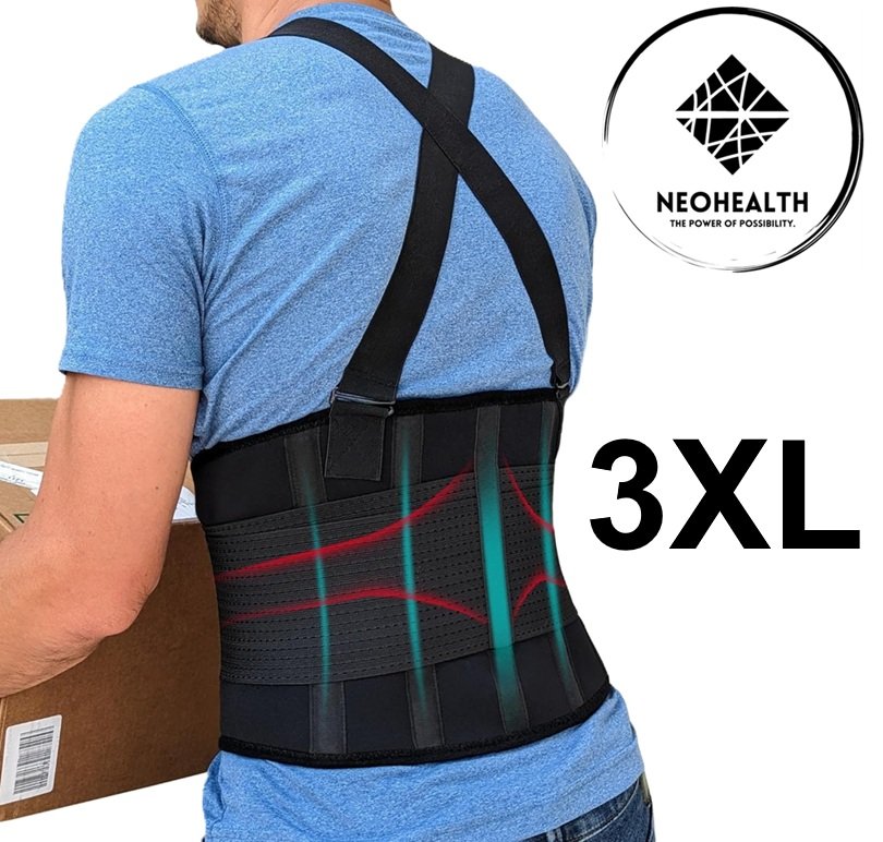 neohealth Lower Back Brace Support Belt with Suspenders & travel bag - 3xl - black