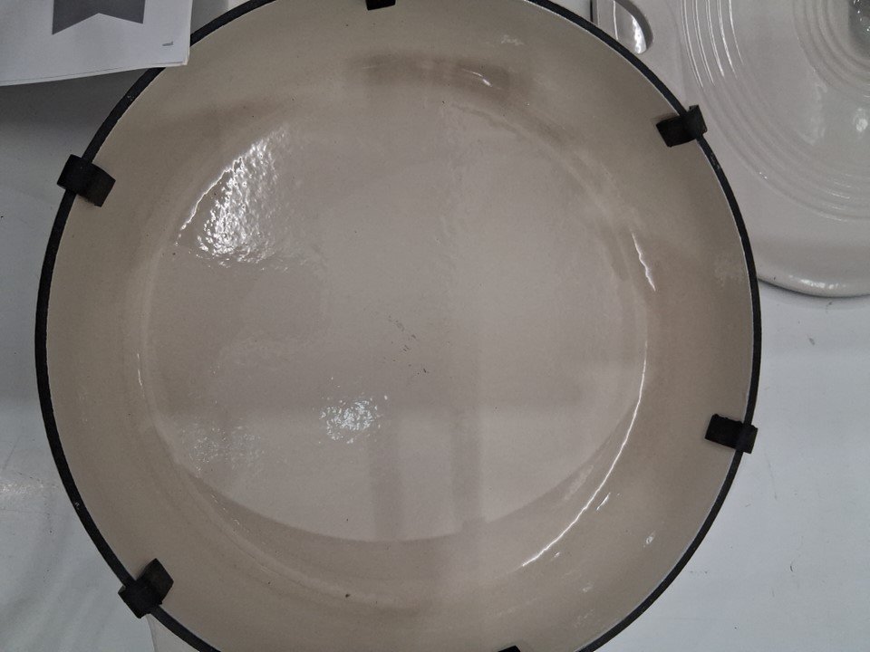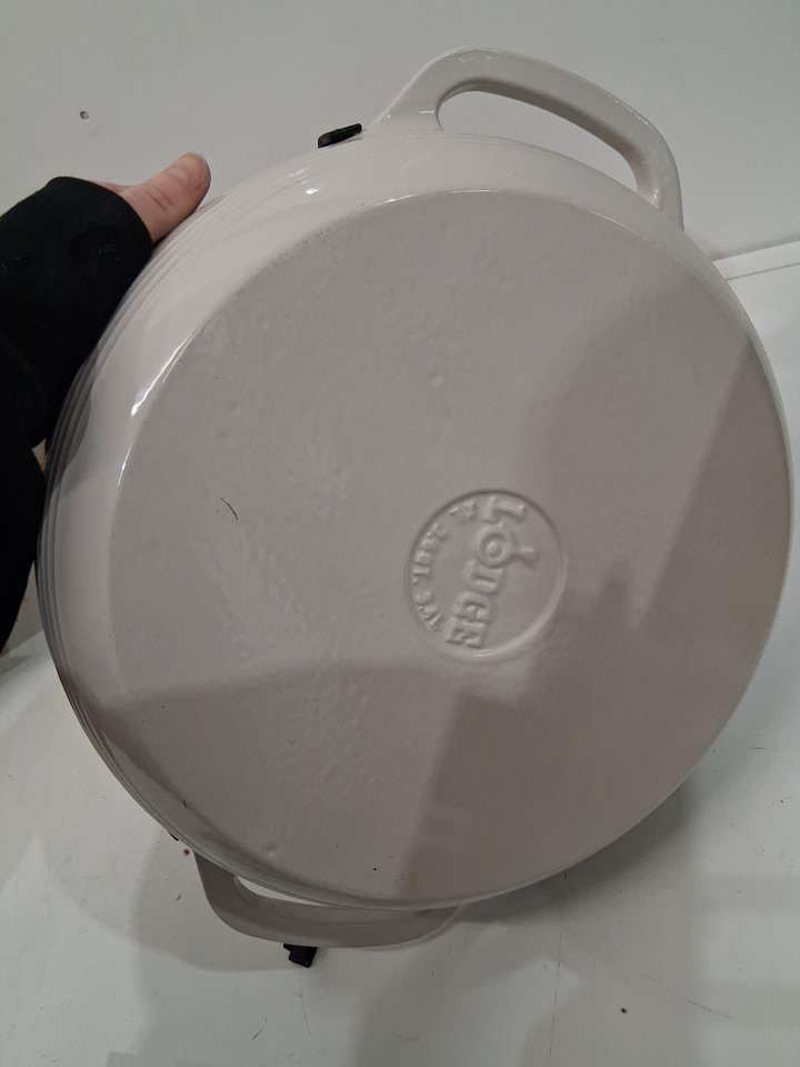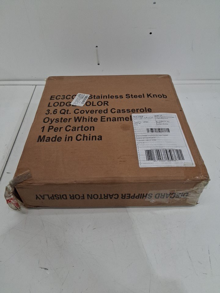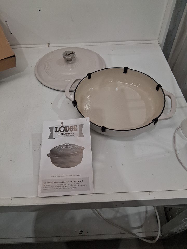 Lodge Sauté pan with STAINLESS STEEL KNOB - 3.6QT- 14.40" x 12.55" x 3.40"- Oyster WHITE ENAMEL (MODEL: EC3CC13)