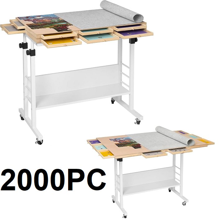 tetalk 2000 Piece Foldable Felt Jigsaw Puzzle Board Puzzle Table with 2 Felt Cover and 8 Sorting Trays/Drawers 29.5-37" H - white/maple