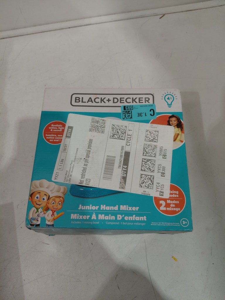 3PC BLACK + DECKER JUNIOR HAND MIXER WITH 2 MIXING MODES & REALISTIC SOUNDS, ACTION & LIGHT - WHITE/AQUA