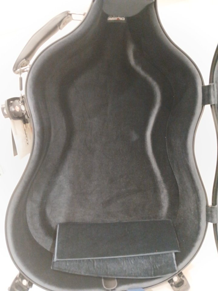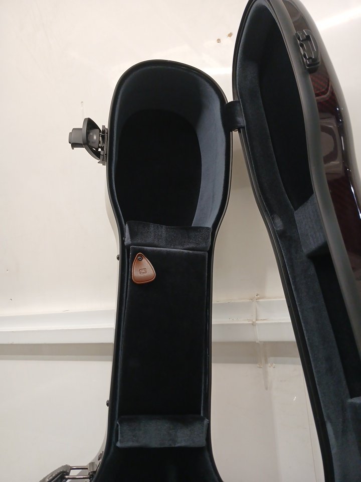 The case has tiny, minor scratches. The inside is a darker blue than the cover