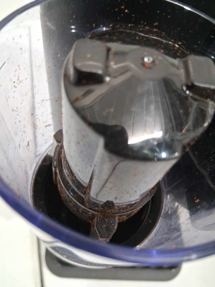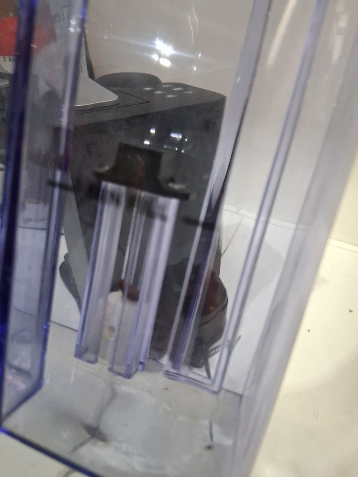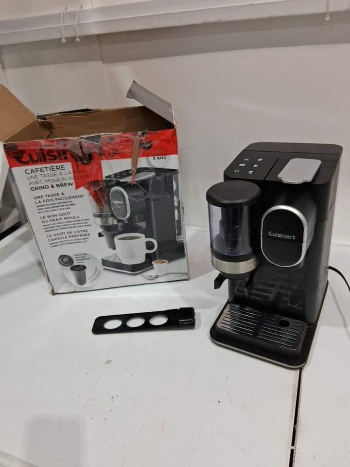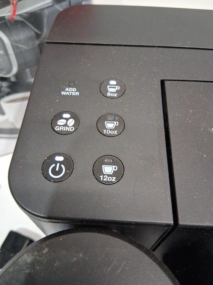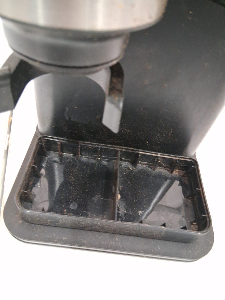 Tested for power. Has some grounds left over and a coffee bean is stuck in the reservoir.