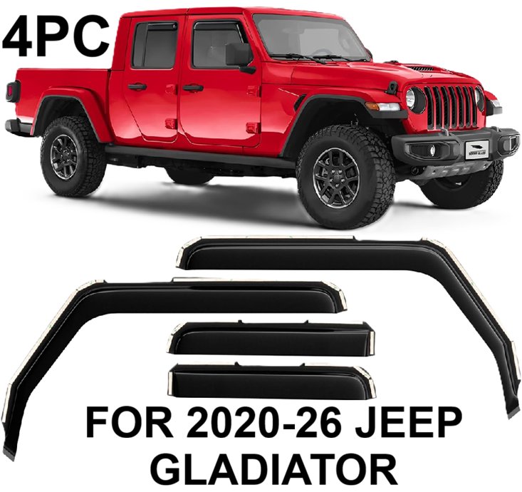 4pc Voron Glass In-channel Extra Durable Rain Guards - for 2020/26 jeep gladiator - black (model:200633)