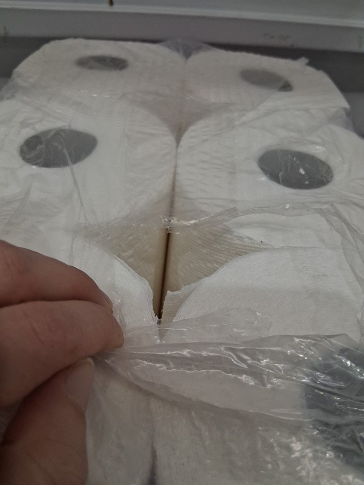 Has a few rips in the packaging. Some debris may have gotten inside.