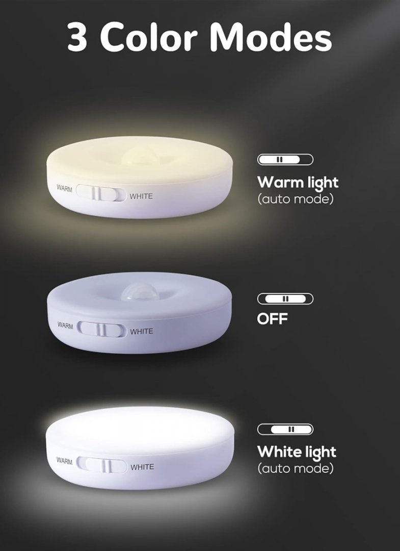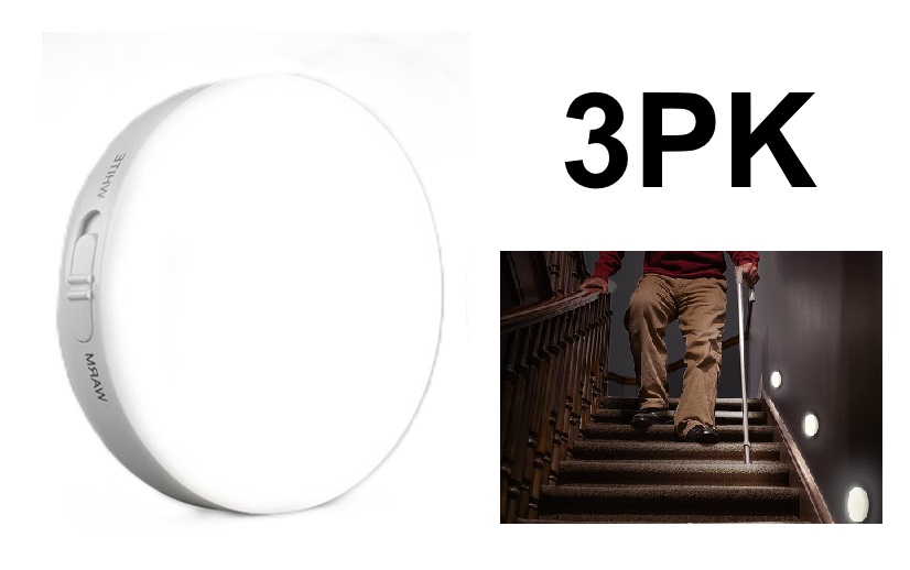 3PK Homelist Motion Sensor Rechargeable Wireless Indoor Puck LED Lights - 150LM - White