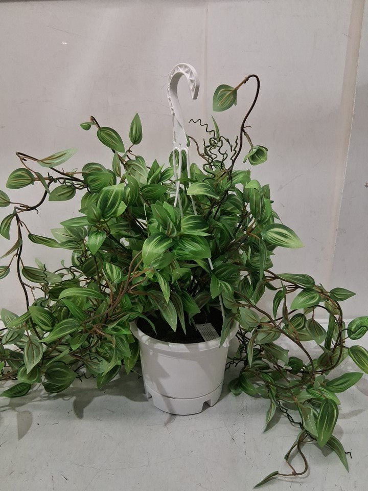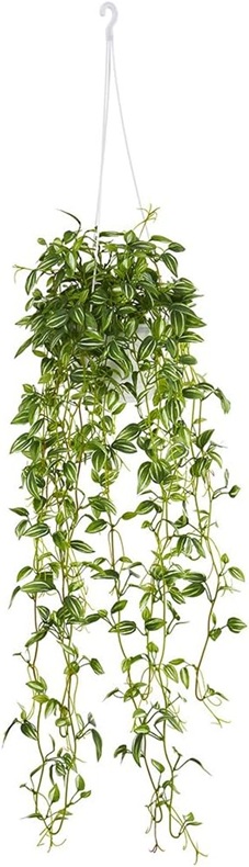 Nearly Natural Artificial Variegated Tradescantia Plant Hanging Basket - 34" - Green (Model: 6946)