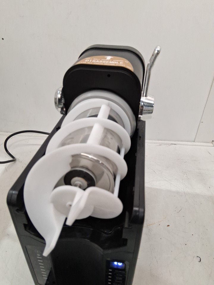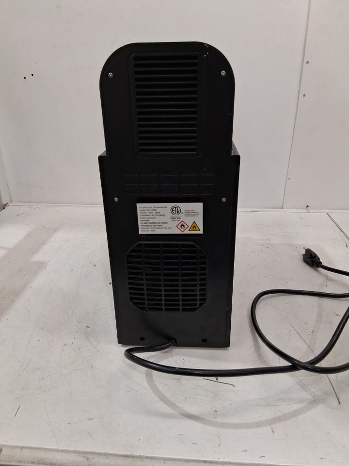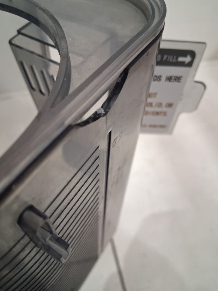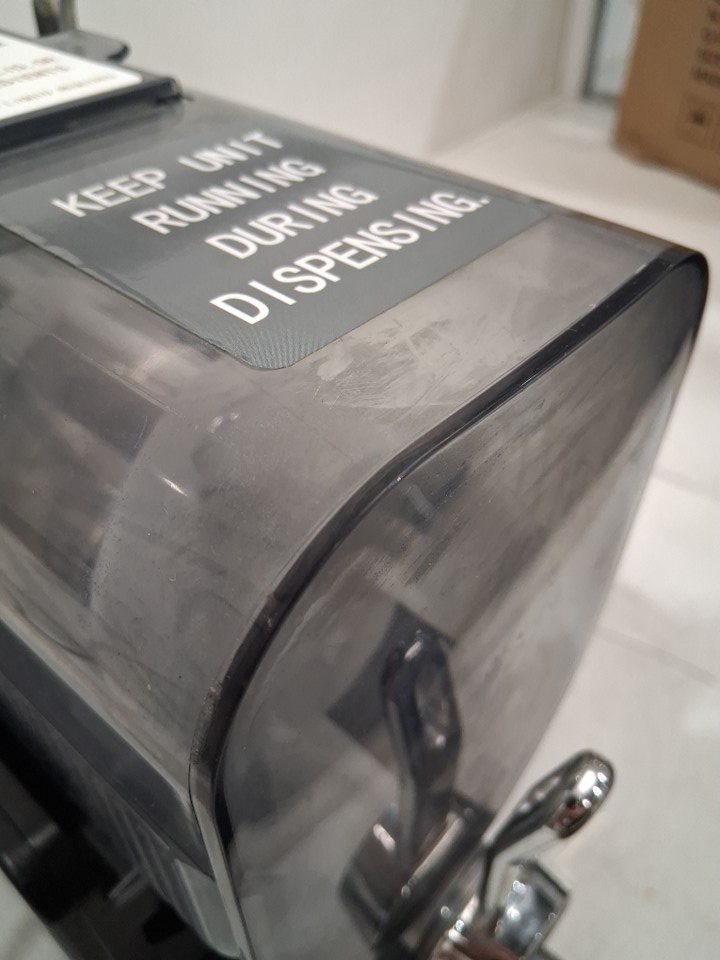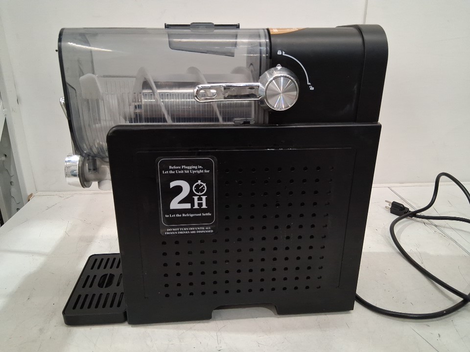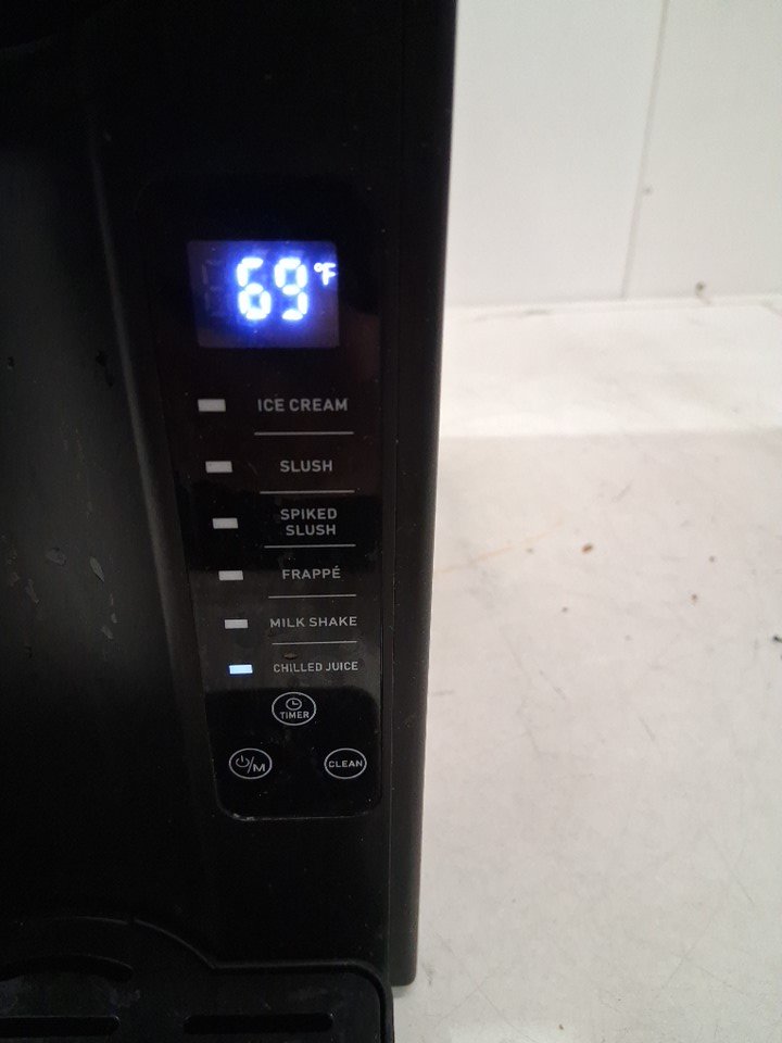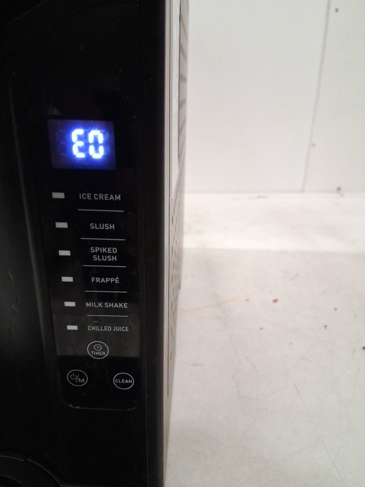 The plastic pieces meant to lock the cover into place are broken, meaning the cover only sits loosely in place. If it is not in the proper position, the panel will show error "E0" and the machine will not function. Customer will either need to repair/replace the locking mechanism or find a different way to keep the cover held in place in order for the machine to work reliably. Additionally, there are some light stains and residue that indicate some prior use - see photos. Outside of these issues, the machine appears to function properly as long as the cover is in place and there are no other apparent issues or damage. Tested for basic power and cooling.