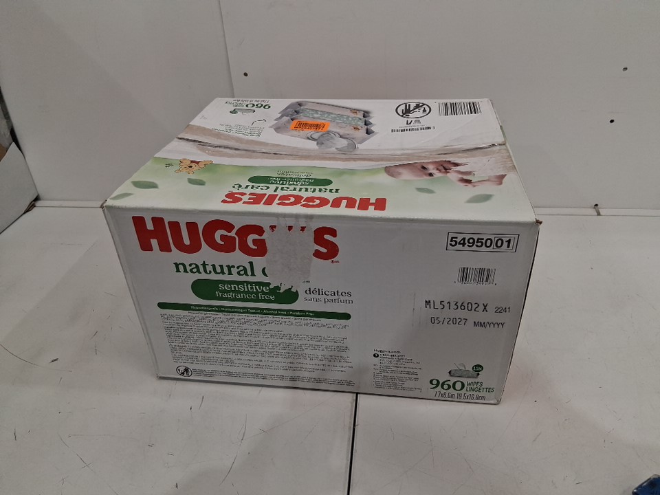 12PK HUGGIES NATURAL CARE SENSITIVE SKIN BABY WIPES - FRAGRANCE FREE, ALOE VERA - 64CT PER PACK (768 TOTAL WIPES) - WHITE/GREEN