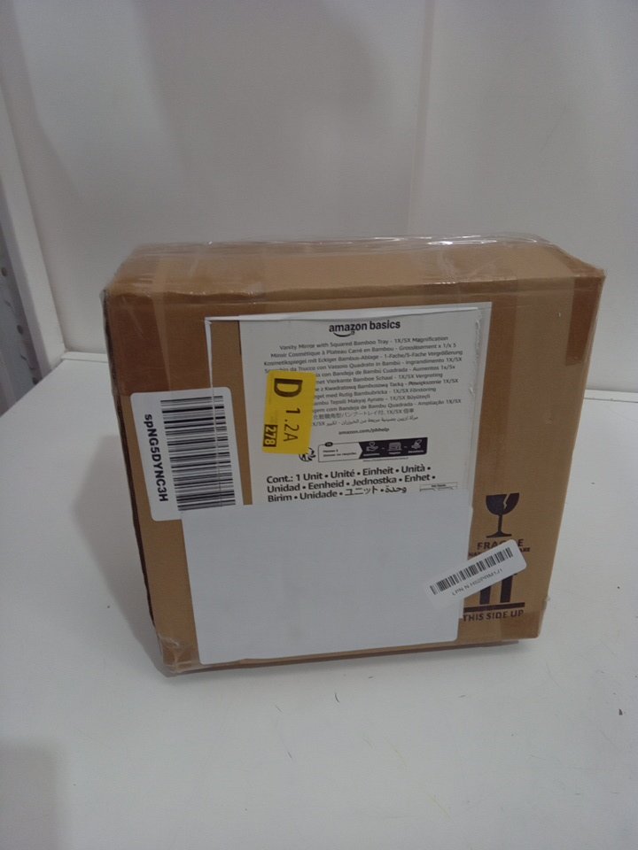 amazonbasics vanity mirror with squared bamboo tray - 1x/5x magnification - 7"
