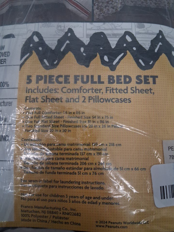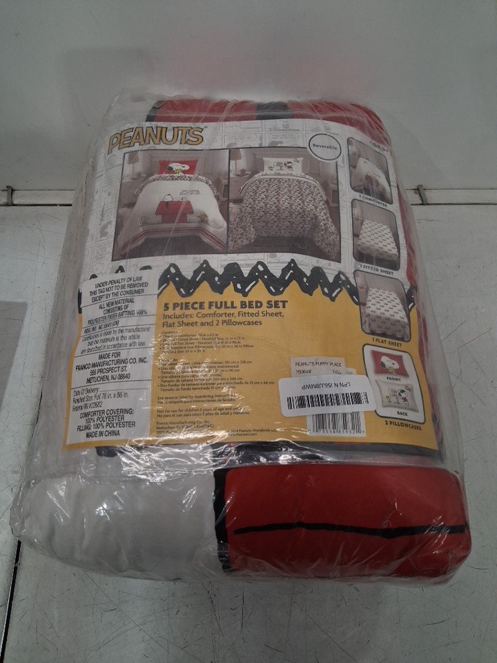 5PC Franco Peanuts Charlie Brown & Snoopy Classic Pals Super Soft Comforter and Sheet Set - FULL - CREAM/RED