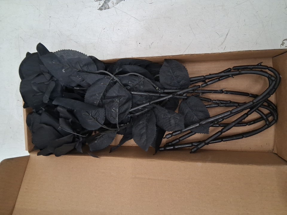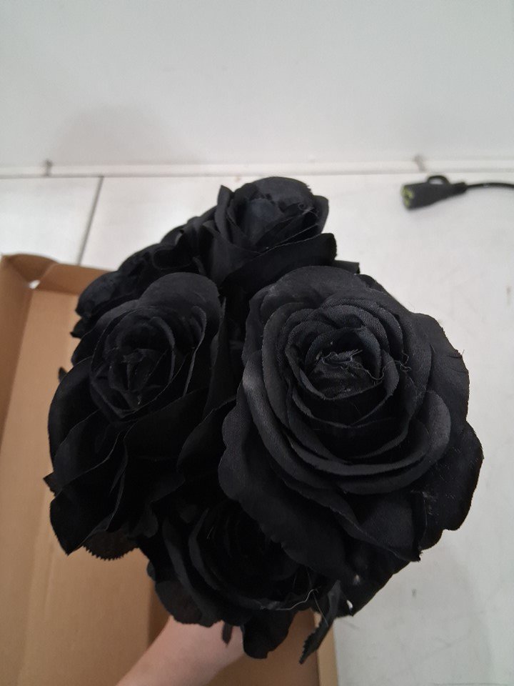 6PK ARTIFICIAL LONG STEM HALLOWEEN ROSES - 18" - BLACK