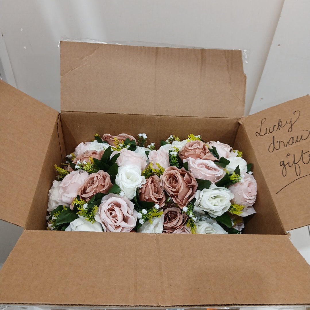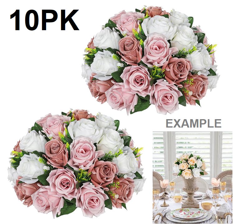 10PK LUCKY DRAW GIFTS FAUX ARTIFICAL FLOWER CENTERPEICES, SILK ROSES - MULTI COLOR