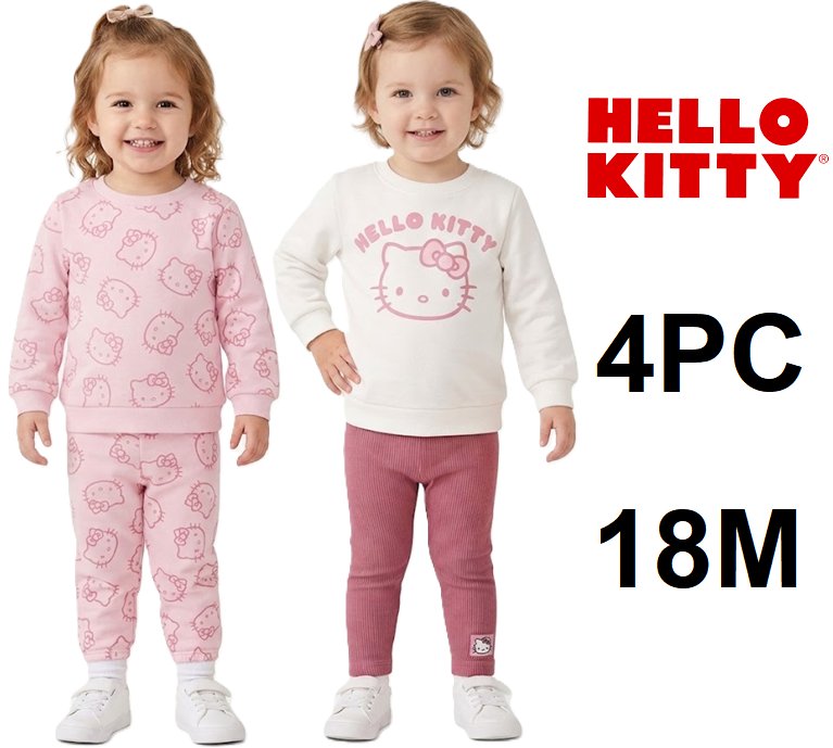 4pc TODDLER girl's hello kitty sweater seats - (2) pants, (2) crewneck sweatshirts - 18M - PINK (STYLE: 2441616
