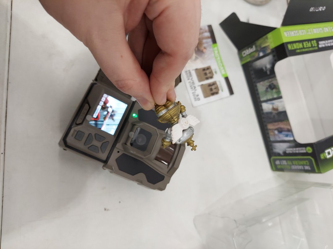 Item arrived appearing new with minor damage to the box, to confirm function staff removed the items from the box to test for basic power & function. Please note that this item only works via cellular network in the US but the item can still be used in canada with the app or locally by using the SD card.