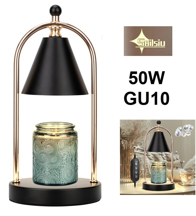 Soilsiu Candle Warmer Lamp with Timer Settings - 50W - GU10 - BLACK/Gold (Model: FRA-006)