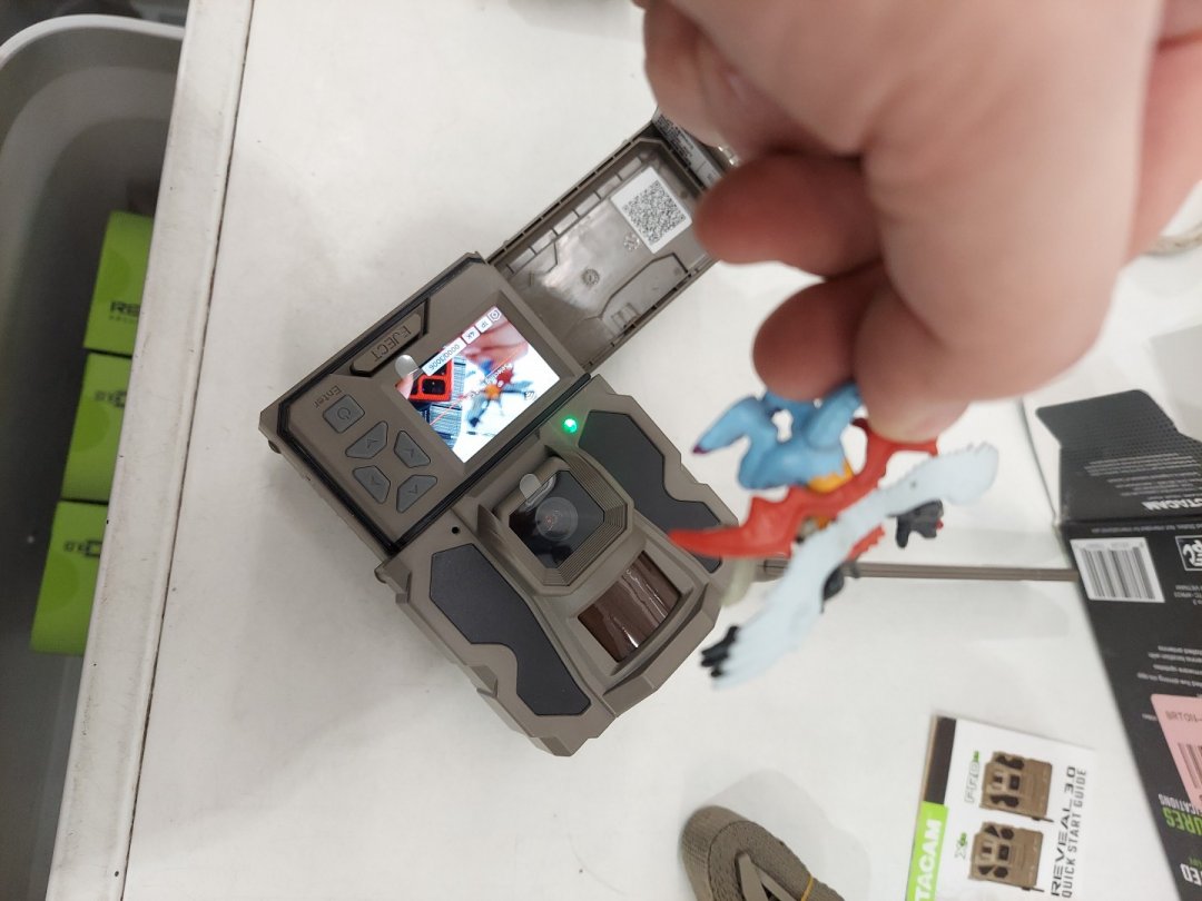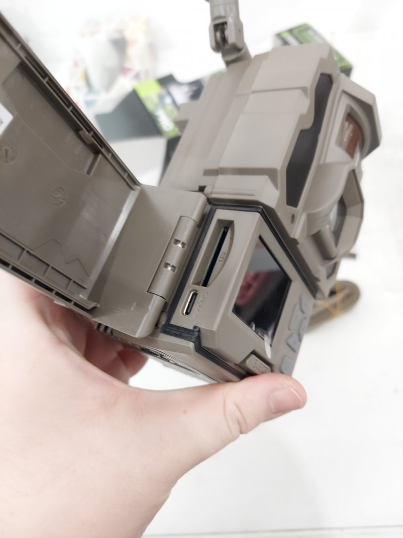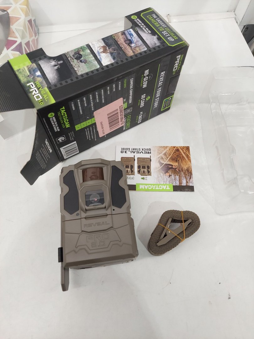 Item arrived appearing new with minor damage to the box, to confirm function staff removed the items from the box to test for basic power & function. Please note that this item only works via cellular network in the US but the item can still be used in canada with the app or locally by using the SD card.