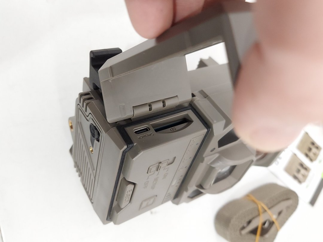 Item arrived appearing new with minor damage to the box, to confirm function staff removed the items from the box to test for basic power & function. Please note that this item only works via cellular network in the US but the item can still be used in canada with the app or locally by using the SD card.