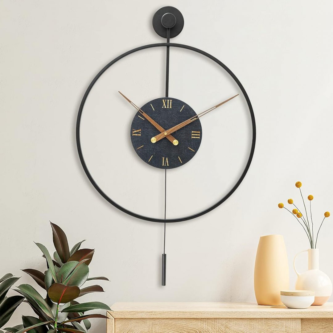 Pytha Sight Modern Decorative Pendulum Wall Clock - 31" × 20" - black/brown (model; PSYBWK50)