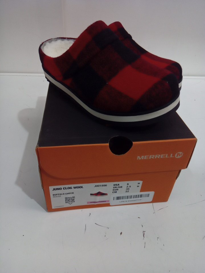 women's merrell juno suede clog shoe slipper - 5 - red plaid