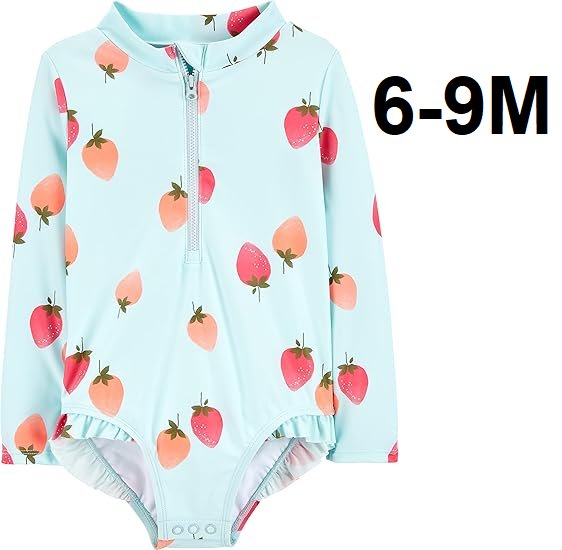 Boy's Simple joys by carters long sleeve zipper one piece swimsuit - 6-9M - Blue strawberry (Style: 1N840710)