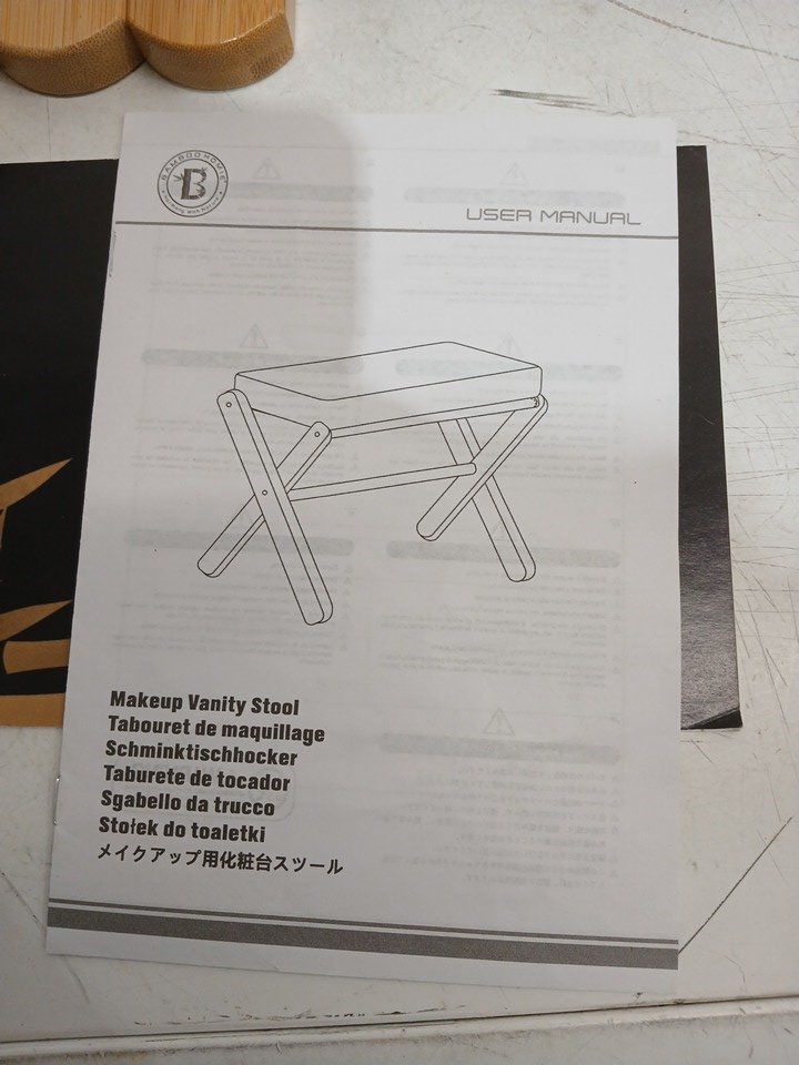 BAMBOOHOMIE Foldable Foot Stool Ottoman - 16.7" x 12" x 17" - natural/grey