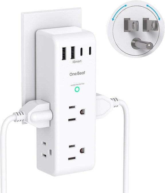 Multi PlugSurge Protector Outlet Extender with Rotating Plug, 4 USB/USB-C Ports - WHITE
