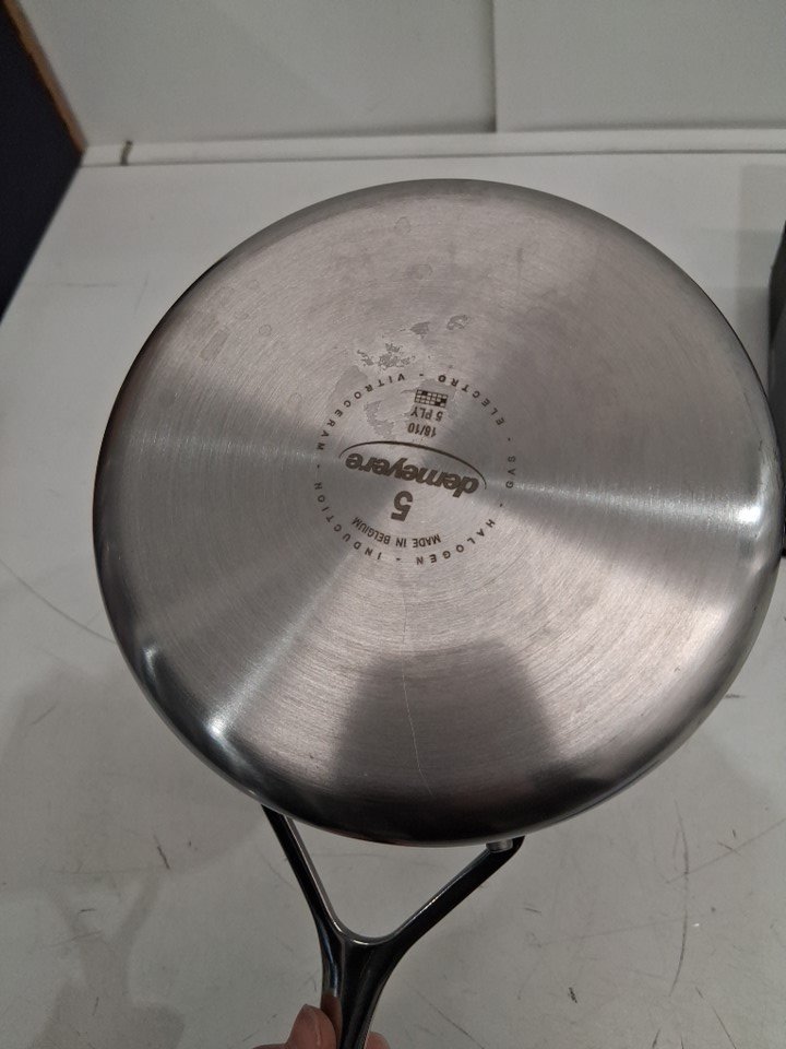 pan has some cooking use evidence. Please be aware we have inspected this product to the best of our knowledge, however; These items still have to go through storage & bid pick up/transportation which may result in minor scuffs not pictured due to shifting around during this process.