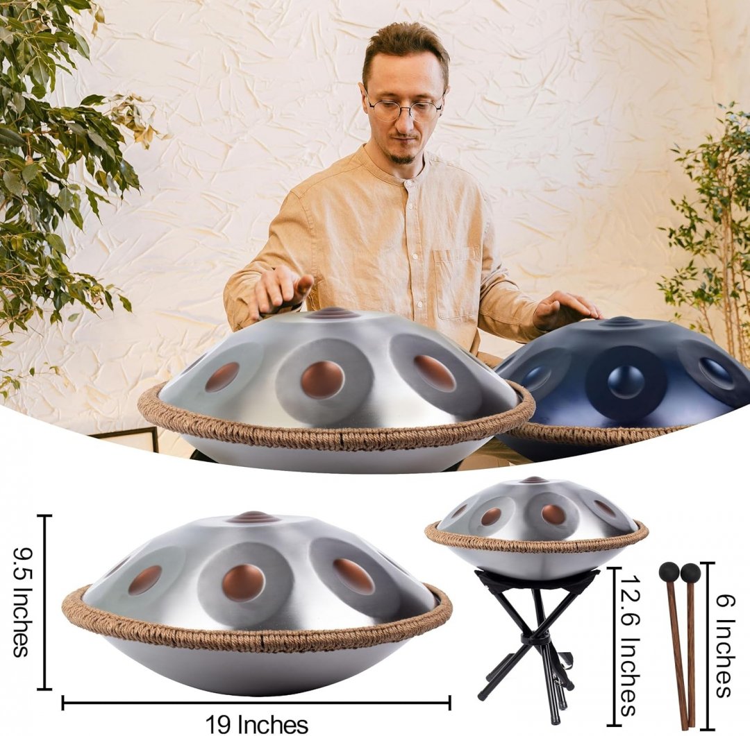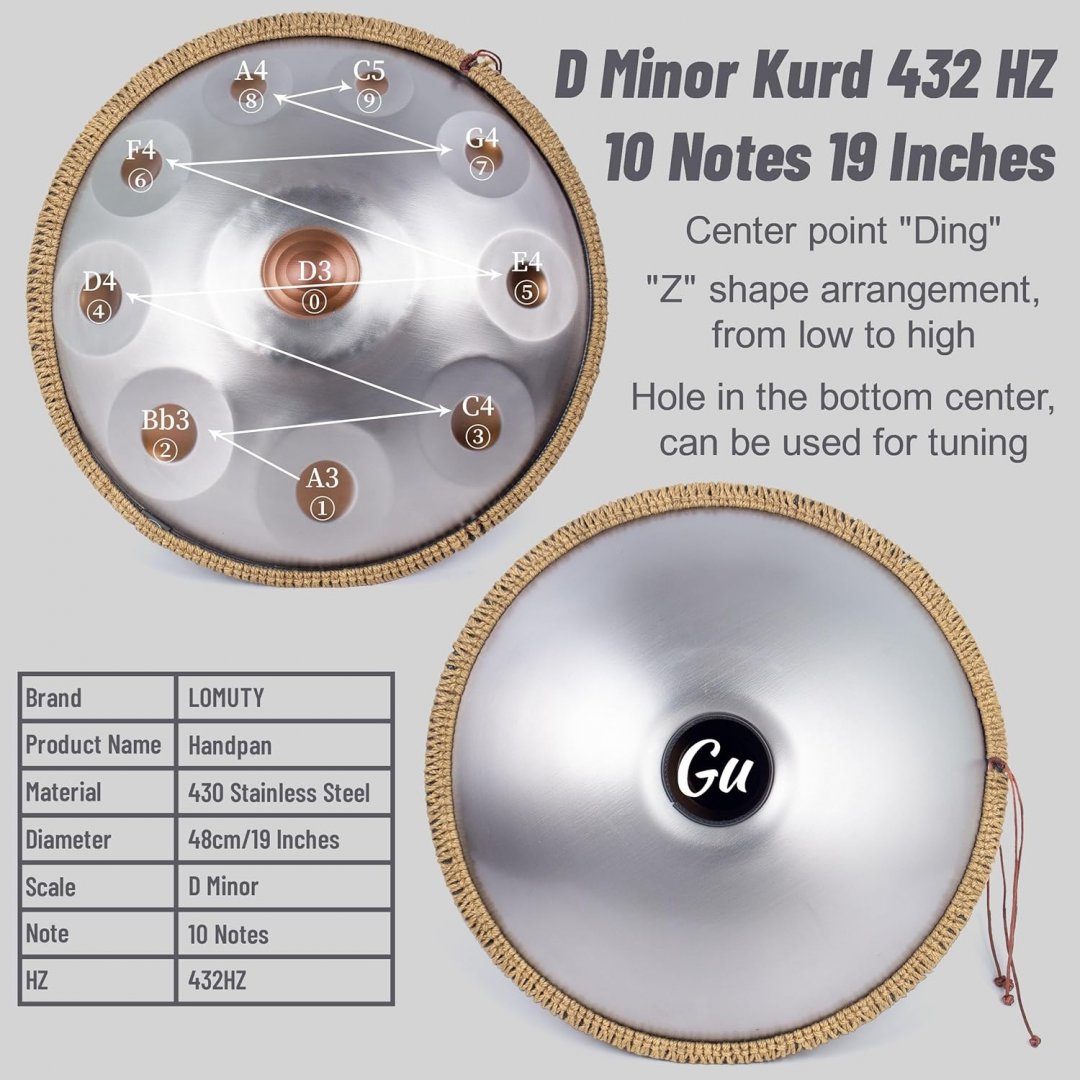 Lomuty D Minor Kurd 10 Notes Handpan - 19" - silver (model: Handpan-10note-19in-Silver)