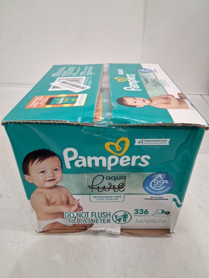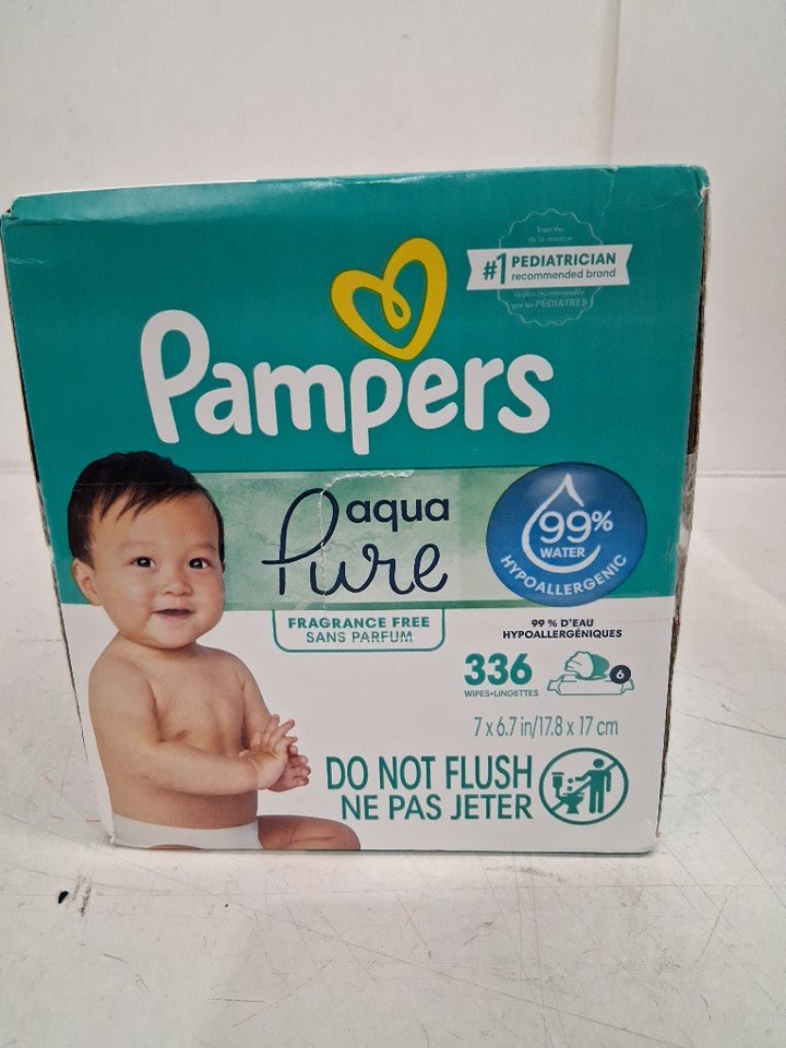 6PK Flip-Top baby PAMPERS aqua pure fragrance-free hypoallergenic wipes - 56 per pack (336 total) - white (model: 43220-8977)