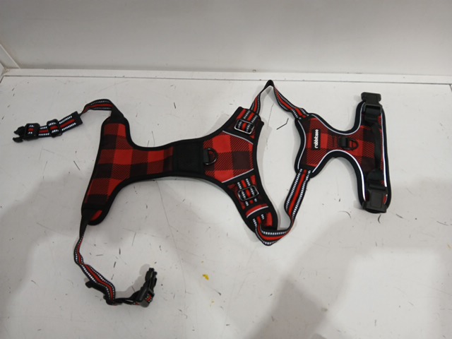 RABBITGOO PADDED ADJUSTABLE CHEST NO PULL DOG HARNESS WITH TWO LEASH CLIPS - Large - RED/BLACK PLAID