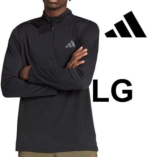 MEN'S ADIDAS MT HALF ZIP LONG SLEEVE SHIRT -LARGE - BLACK