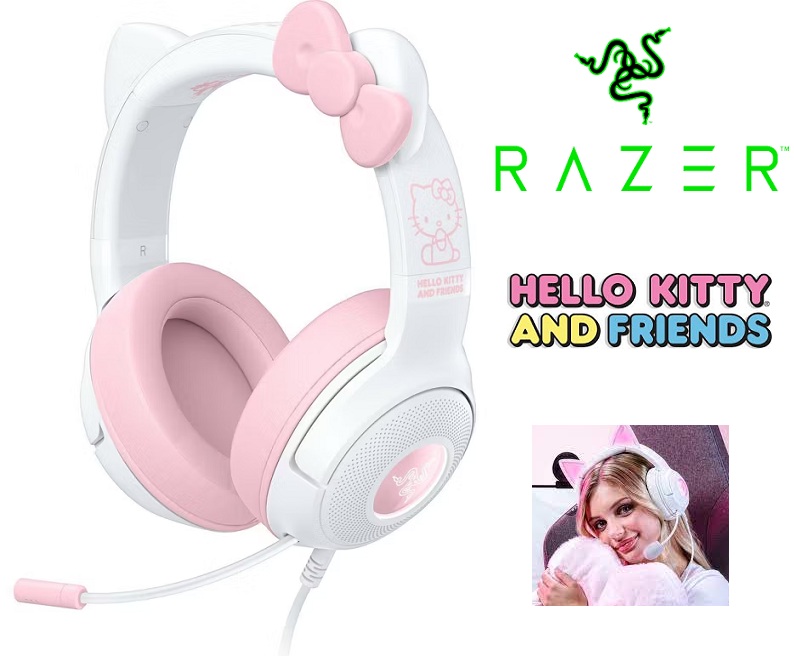 Razer Kraken Kitty V2 Hello Kitty and Friends Edition Wired Headset with Built-in Noise Cancelling Microphone and Chroma RGB - White / Pink (Model: RZ04-04730500-R3M1)