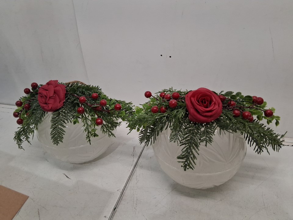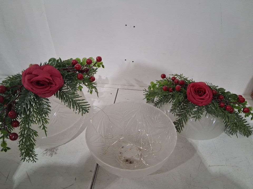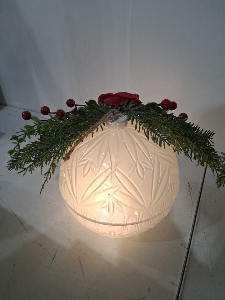 One of the flower balls is split in half, but the customer should be able to glue it back together.