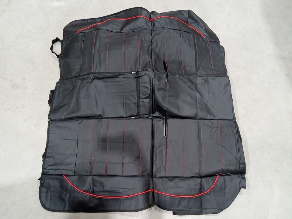 their is some general dust present dust to shipping and handling / our warehouse. Keep in mind that this is the back seat cover only and does not come with any covers for the headrests. see photos
