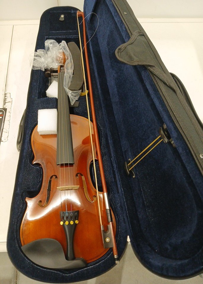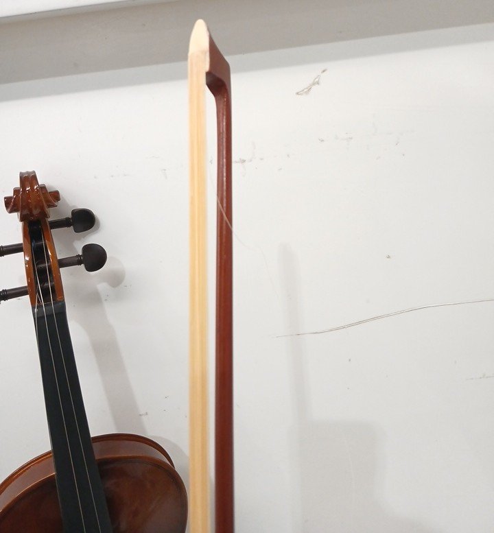 This item is missing its replacement strings. This item needs to be re-stringed and the box has minor fraying