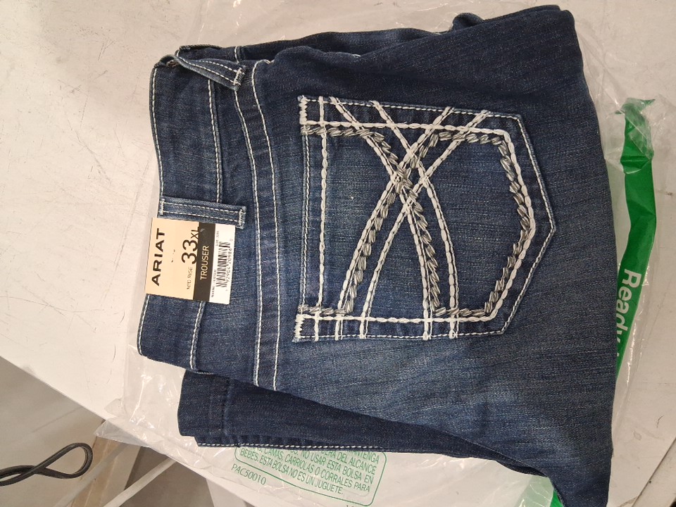 Women's Ariat Trouser Mid Rise Stretch Entwined Wide Leg Jean - 33XL - Marine DARK WASH BLUE - (style: 10025302)