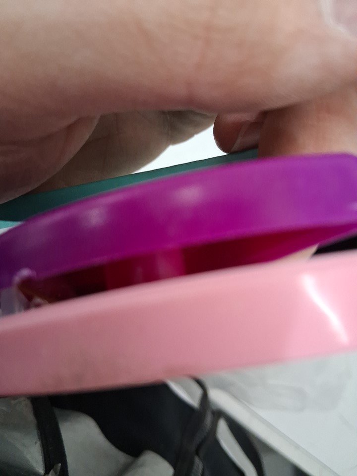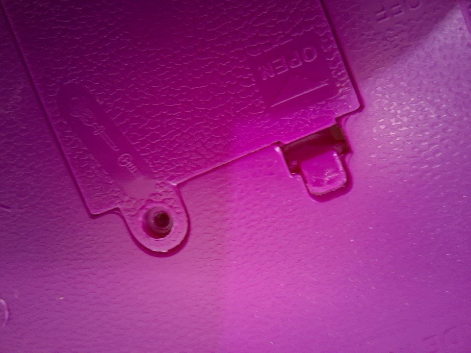 There is cracks on the top of the product from previous usage. The screw is also missing from the battery cover.
