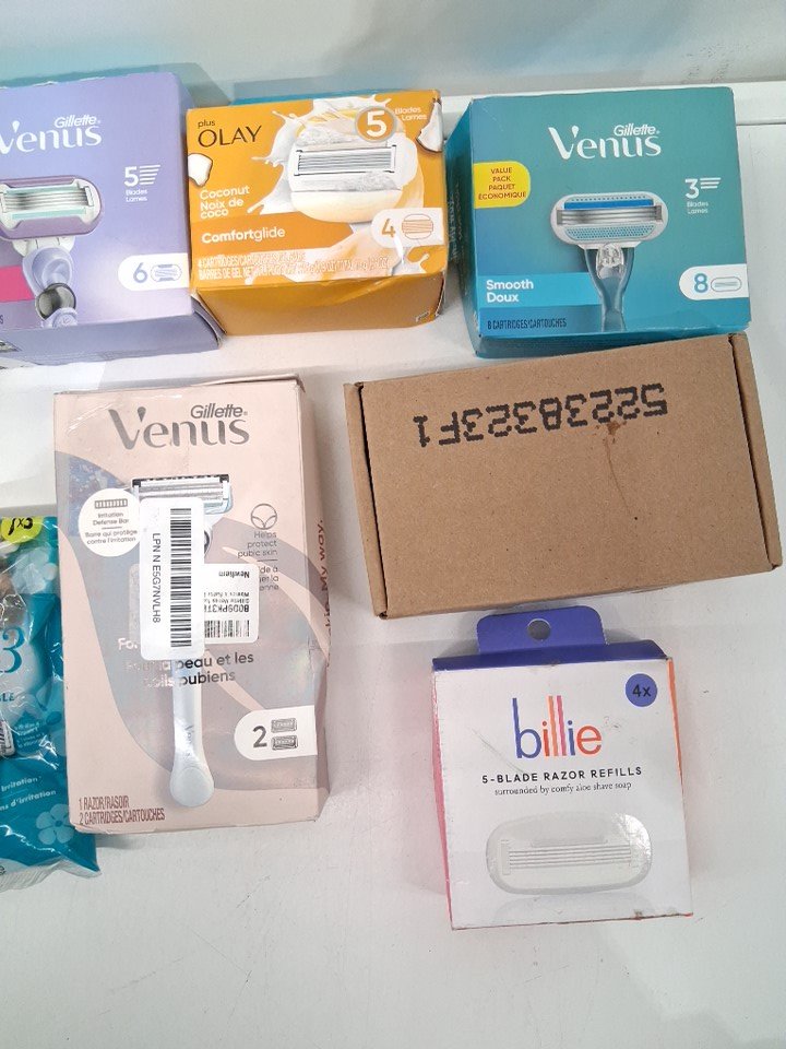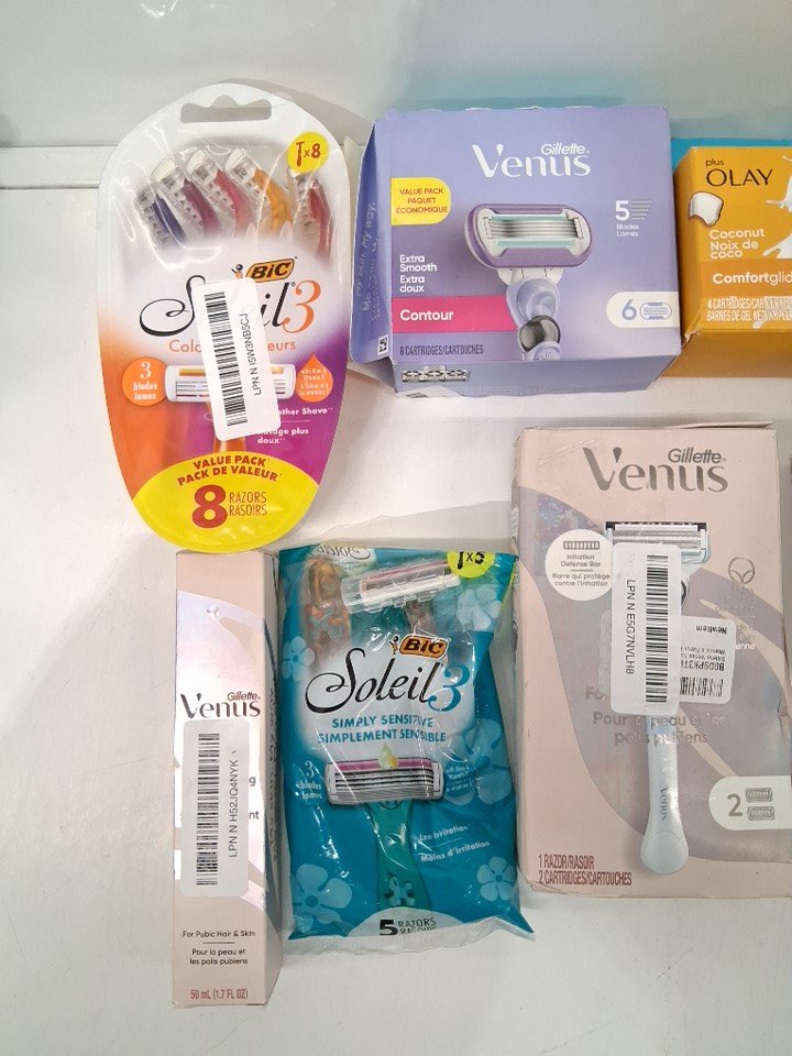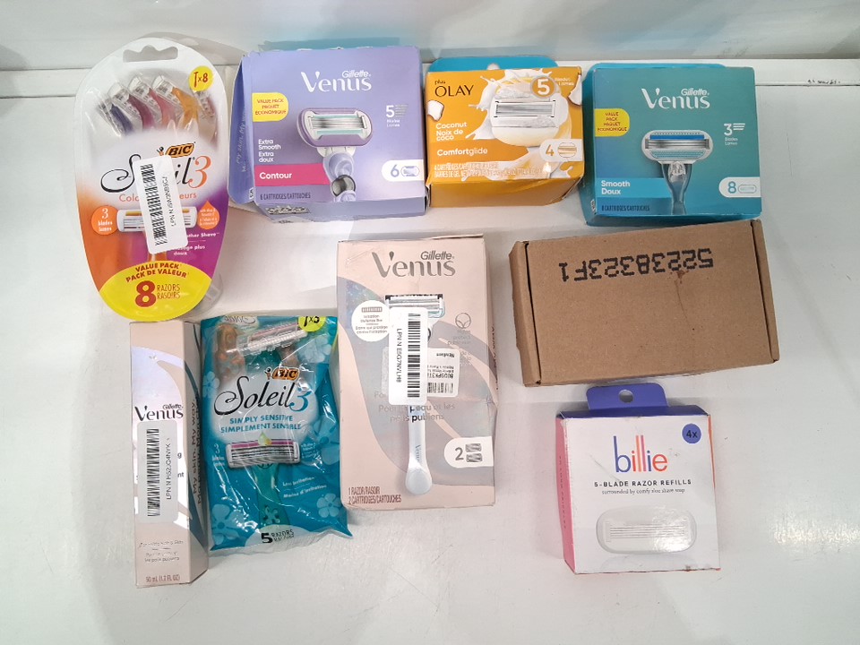 9+ assorted women's razors and shaving products - assorted brands, types and sizes - gillette vnus / bic soleil 3 / billie / olay