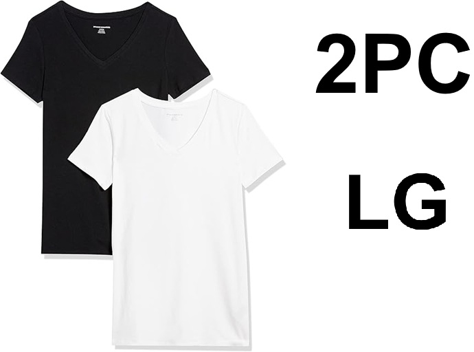 2PC Women's Amazon Essentials Classic-Fit V-Neck T-Shirt - Large - Black/White