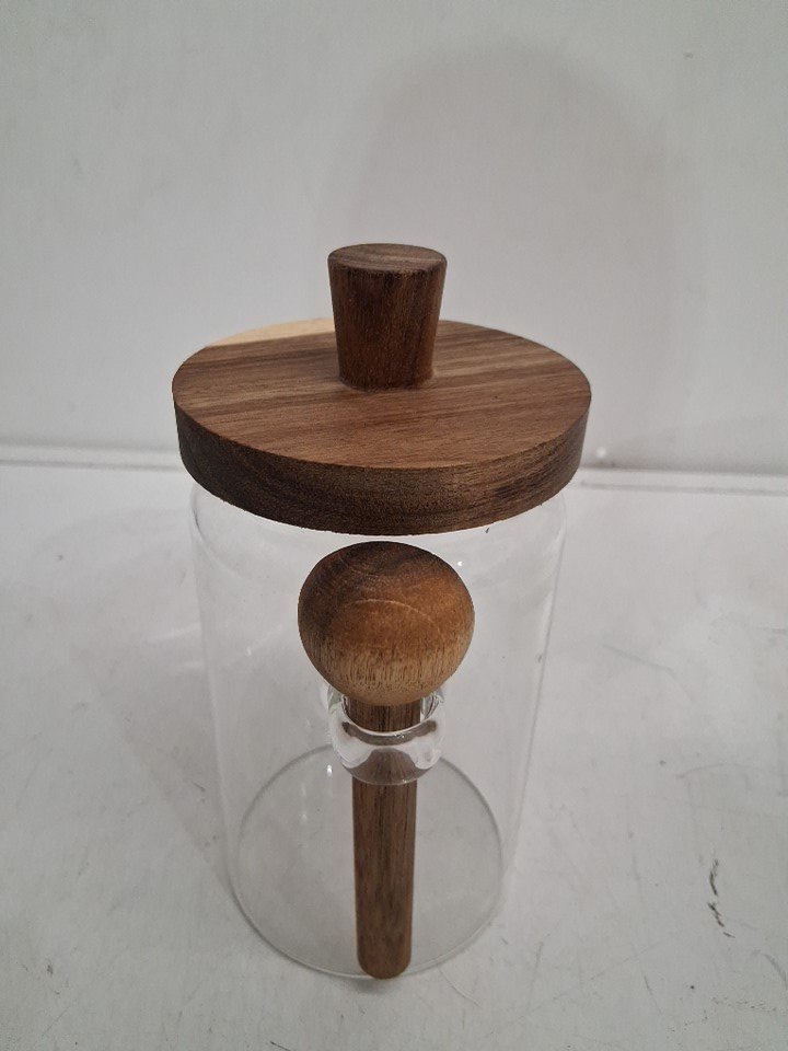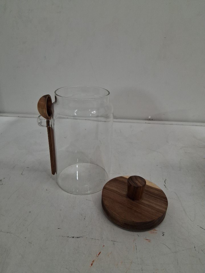 Seicasaya Minimalist Glass Storage Container with Natural Wooden Lid & Serving Spoon - 750Ml - Wood/Clear