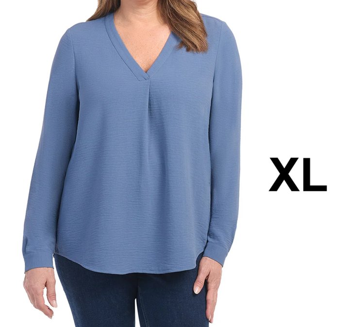 WOMENS DALIA LONG SLEEVE V-NECK BLOUSE - EXTRA LARGE - BLUE