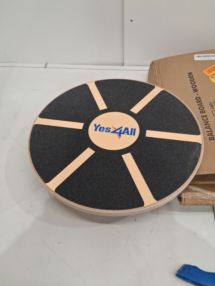 YES4ALL WOODEN WOBBLE BALANCE BOARD FOR HOME GYM/EXERCISE - 15" - BLACK/NATURAL WOOD COLOUR (model: db6f)