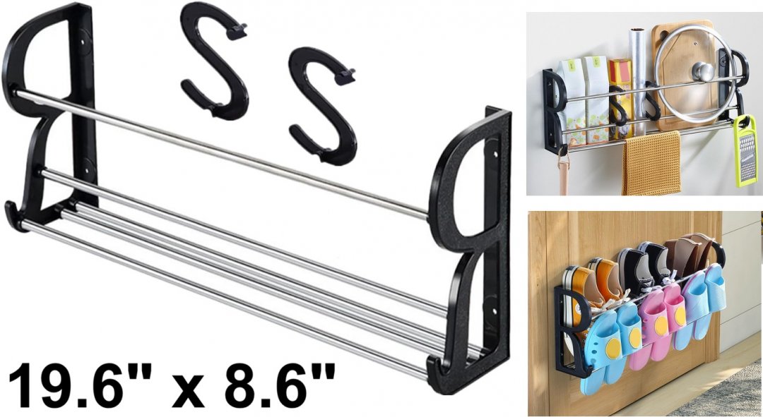 ANDRESLAD Nail-Free Wall Mounted Multipurpose Storage rack - 19.6" x 8.6" x 4.3" - black/silver