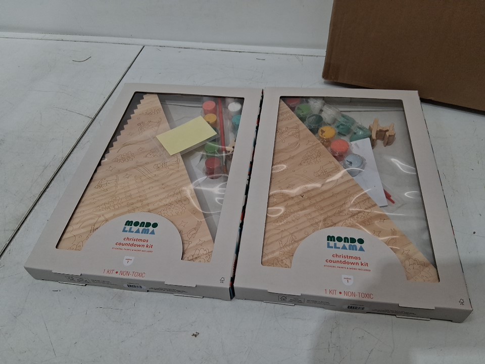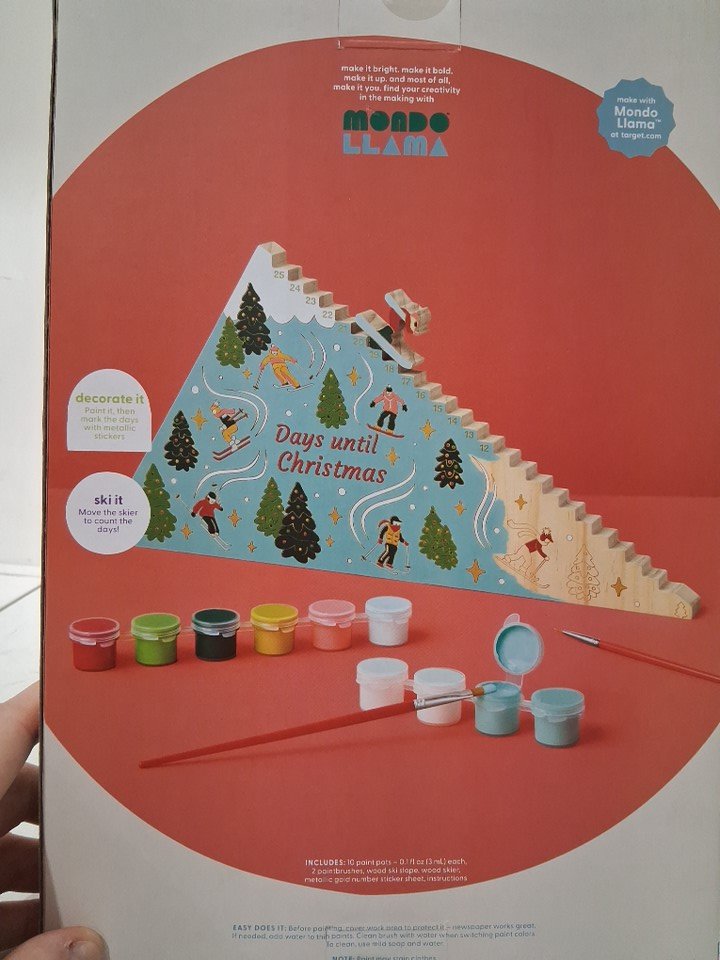 2PK Mondo Llama™ Christmas Ski Slope Countdown Calander Painting Kit - Wood Natural/ Muticolour