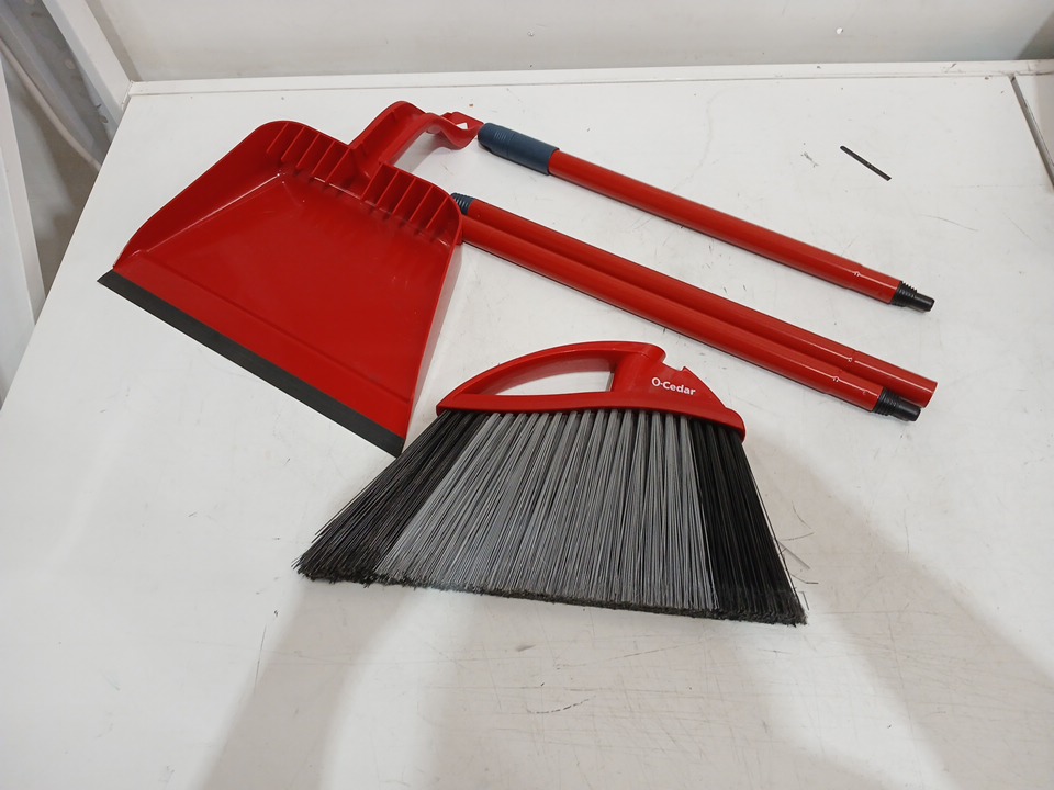 O-CEDAR POWERCORNER PET PRO BROOM WITH STEP-ON DUST PAN - 52" - RED