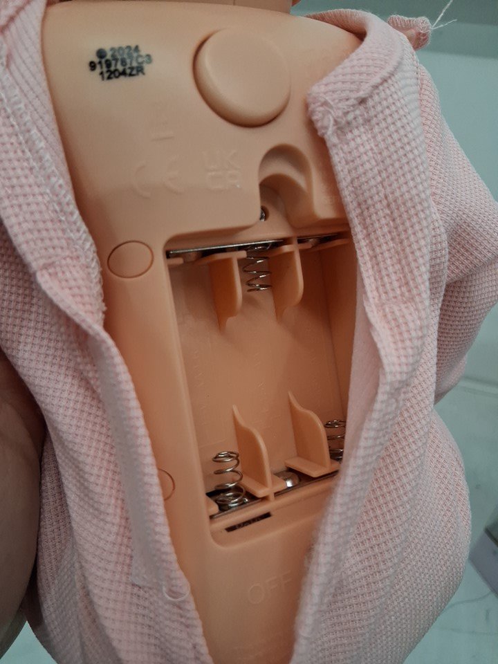 Missing battery back panel. Small white scuff at back of head. (See photos)