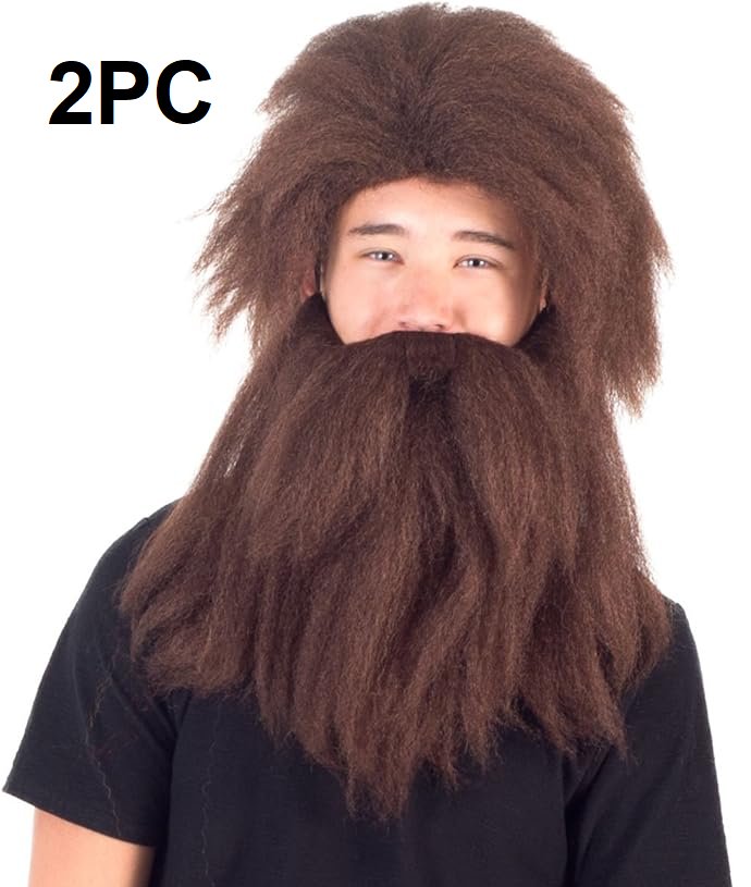 2PC ADULT PREHISTORIC BEARD AND WIG SET - ONE SIZE FITS MOST - BROWN